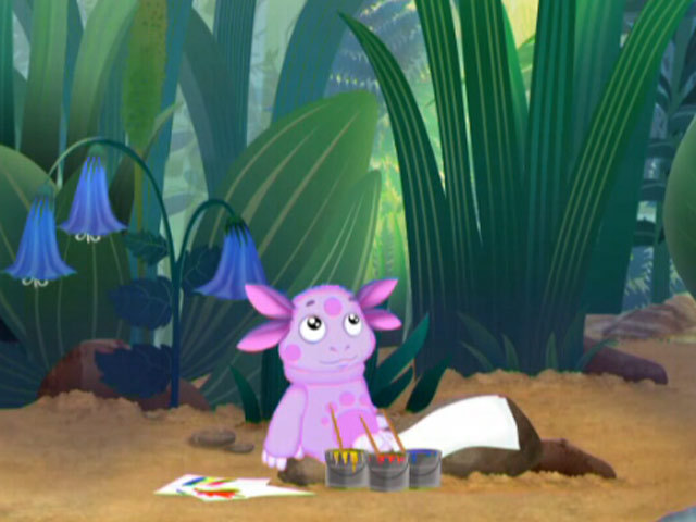 На небе такая красивая радуга, что хочется ее нарисовать! Но у Лунтика всего три краски — желтая, красная и синяя. И все. Что ж, нельзя изобразить радугу — можно нарисовать небо и солнышко. А все-таки хочется сделать портрет Кузи и Пчеленка! Лунтик пока не подозревает, что у него есть три самых главных краски, из них можно получить и зеленый, и фиолетовый, и оранжевый, и коричневый цвета — только пробуй по-разному смешать основные. Рисуй, что хочешь!